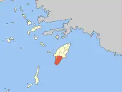 Apolakkia (yellow dot) within South Rhodes municipal unit (red)