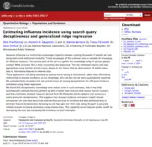 - ↑ "Online Scientific Repository Hits Milestone: With 500,000 Articles, arXiv Established as Vital Library Resource". News.library.cornell.edu. October 3, 2008. Retrieved July 21, 2013.