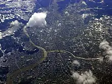 The confluence of the Arakawa River (right) and the Abukuma River (left)
