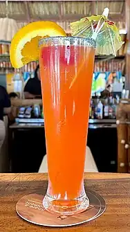 An Aruba Ariba is a cocktail originating in Aruba and is considered the Aruban variant of the Caribbean rum punch. The cocktail holds the title of the most popular mixed drink in the Aruban tourist industry.[1]