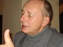 Arvydas Šliogeris was one of the most productive Lithuanian philosophers. During the years of the rebirth, he actively engaged in publicism and became known for his sharp, vivid, and often controversial statements. This philosopher was characterized by an evaluation of hierarchical social structures and criticism of egalitarianism (ideas of human equality).[2] He spoke against the referendum process, as it did not correspond to his views, since voting was not dependent on a person's social status.[3]