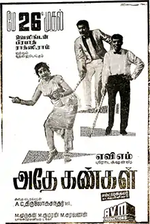 Athey Kangal (pronounced [aðeː kaɳɡaɭ] transl.Same Eyes) is a 1967 Indian Tamil-language mystery thriller film written and directed by A. C. Tirulokchandar. The film stars Ravichandran and Kanchana. It focuses on a girl's family being stalked by a masked murderer, and her lover's attempts to apprehend him.