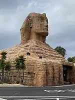| Big Ayers Rock | North Arm Cove | 1990 | This 1:40 scale model of Uluru was formerly an attraction at Leyland Brothers World, and later formed the roof of the Rock Restaurant. Technically not a "Big Thing" (as it was substantially smaller than the item it is modelled on), the Rock Restaurant was loosely grouped with the big things as an object of roadside art. It was destroyed in a fire on 31 July 2018.[13] | ![]() | |