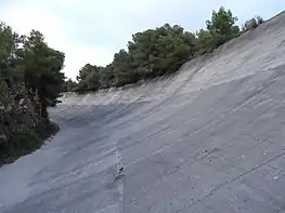 The Autòdrom de Sitges-Terramar is a former racing circuit located in the small village of Rocamar, in Sant Pere de Ribes near Sitges in Barcelona, Catalonia, Spain. It was built in 1923 within 300 days, and was one of the first racetracks in the world.[1] At the time, Europe had only two racetracks, Brooklands and Monza, and the United States only had Indianapolis. Although minor races were sporadically held on the circuit through the 1950s, it was largely abandoned after the inaugural season of 1923. Now, it has seen use only as the backdrop to a selection of car advertisements, an outing of The Grand Tour, and as a chicken farm.[2][3]