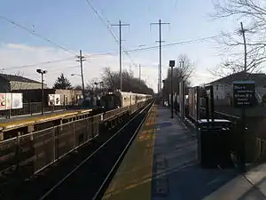 Avenel has two short three-car high-level side platforms on two tracks. It had been slated for closing by NJ Transit because of the excessive costs of adding elevators for compliance with the Americans with Disabilities Act of 1990.[6] Accessible ramps were installed instead to each platform at their southern ends.