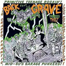 Back from the Grave, Volume 3 (LP) is the third installment in the Back from the Grave series of garage rock compilations put together by Tim Warren of Crypt Records.[1][2][3][4][5][6] It was released in 1984. In keeping with all of the entries in the series, and as indicated in the subheading which reads "Mid 60s Garage Punkers," this collection consists of songs which display the rawer and more aggressive side of the genre and are often characterized by the use of fuzztone-distorted guitars and rough vocals.[2][4][7] The set generally excludes psychedelic, folk rock, and pop-influenced material in favor of basic primitive rock and roll.[2][4][7] The packaging features well-researched liner notes written by Tim Warren which convey basic information about each song and group, such as origin, recording date, and biographical sketches, usually written in a conversational style that includes occasional slang, anecdotes, humorous asides.[7] The liner notes are noticeably opinionated, sometimes engaging in tongue-in-cheek insults directed at other genres of music.[4][7] The packaging also includes photographs of the bands, and the front cover features a highly satirical cartoon by Mort Todd depicting revivified "rock and roll" zombies who have just emerged from the grave to "drop in a pit" all adherents of supposedly "heretical" pop and progressive music which have come to prominence over the years.[4][7]