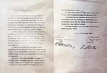The Soviet Union denied the existence of the secret protocols to the Molotov–Ribbentrop Pact, even though they were widely published by western scholars after surfacing during the Nuremberg Trials.[4] Soviet propaganda also maintained that there was no occupation and that all three Baltic states voluntarily joined the Union – the People's Parliaments expressed people's will when they petitioned the Supreme Soviet of the Soviet Union to be admitted into the Union.[5] The Baltic states claimed that they were forcefully and illegally incorporated into the Soviet Union. Popular opinion was that the secret protocols proved that the occupation was illegal.[6]