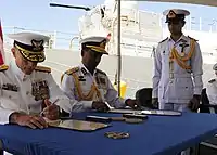 Vice Admiral Ahmed received by Vice Chief of Naval Staff of the Indian Navy, Vice Admiral Sunil Lanba