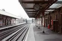 Few alterations took place to the station upon transfer to the Underground. Barkingside station is a "Grade II" listed building, marking it as a structure of architectural significance.[9] Probably designed under the direction of W. N. Ashbee, the GER architect, it is dominated by a substantial brick building, surmounted by a cupola.[9] The interior is notable for the fine hammerbeam roof to the ticket hall. Both platforms retain the ornate canopies with the "GER" initials still visible in the bracketry.