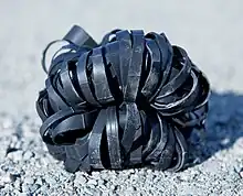 A basse, made of cut bicycle rubber tubes, tied together into a ball. Photo: Lars Haugdal Andersen / www.basse.no