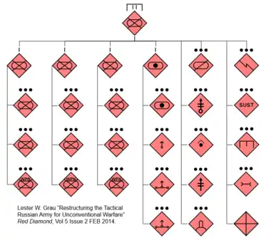 - ↑ Grau, Lester W. (September 1989). "The Soviet Combined Arms Battalion: Reorganization for Tactical Flexibility" (PDF). Soviet Army Studies Office: 20. Archived (PDF) from the original on 25 March 2022 – via Defense Technical Information Center.