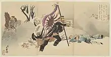 General Song decided to attack to re-establish his defensive position. On 18 December, 10,000 Qing forces prepared to storm the town of Niuzhuang but were first attacked by the 5th Brigade and forced to withdraw, suffering 500 casualties to 440 Japanese casualties. The counterattack was also thrown into disarray when, on 10 January, the 1st Brigade took Kaiping (Gaizhou) from its 5,000 strong Qing garrison, inflicting 1,200 losses to 307 Japanese. Qing reinforcements en route from Yingkou numbering 10,000 came across the retreating men and were thrown into a panic and the offensive was halted. To the relief of General Song, the Japanese temporarily halted offensive actions due to exhaustion and they began to reinforce their current positions.[4][5]