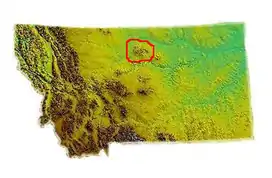 Range coordinates48°12.5′N 109°31.05′W / 48.2083°N 109.51750°W / 48.2083; -109.51750