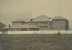 The main building of the high school suffered moderate damage in the form of toppled chimneys, broken windows and some weakened walls as a result of the 1906 San Francisco earthquake. Professor Andrew Lawson of the University of California included one of his own photographs (shown at lower right) of the damage in his famous report issued in 1908.[7]