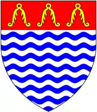 - ↑ Pole, Sir William (d.1635), Collections Towards a Description of the County of Devon, London, 1791, p.502, blazoned as Barry unde of six argent and azure on a chief gules three barnacles or. Shown at Tawstock as Barry unde of sixteen argent and azure on a chief gules three barnacles or