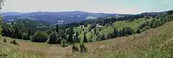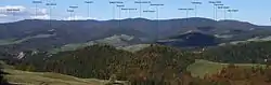 According to Slovak geographers, Beskid Sądecki is part of Ľubovnianska vrchovina.[2] The separation of the ranges was done by Poland, during the regionalisation of mountains made by Jerzy Kondracki, which the mountain range is named by in Slovakia. Some Polish geographers state that the Slovak part of the Radziejowej Range can be linked with the Ľubovnianska vrchovina, the name Lubowelskie Upland is also used.[3] According to these Polish geographers the names Radziejowej Range and Ľubovnianska vrchovina are only used when explaining the border, and should actually be one mountain range. This overview of the separation of one mountain range is not primarily discussed by other Polish geographers who believe that the Slovak mountain range should be treated as a separate physio-geographic region.