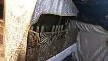 Today, the city is surrounded by two bypass roads for Israeli settlers, leaving the inhabitants squeezed between thirty-seven Jewish enclaves, where a quarter of all West Bank settlers, roughly 170,000, live; the gap between the two roads is closed by the 8-metre high Israeli West Bank barrier, which cuts Bethlehem off from its sister city Jerusalem.[72] In 2002 the Church of Nativity was broken into by 200 militiamen who held priests and nuns hostages and plundered the church's coffers, it was subsequently sieged by Israeli forces until a deal was reached.[73][74]