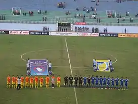 There is uncertainty around how the game was ultimately brought to Bhutan.[2] During the colonial period in Bhutan, although it had signed treaties with the government of India which ceded control of its defence and foreign relations to the British, continued to function as an independent state and was never under the direct rule of the British government in India.[3] Whereas Indians were introduced to football by the British government, the lack of a permanent British presence in Bhutan meant that foreign sports were not played there.[3] The arrival of football in Bhutan was very closely linked with the opening of schools in Haa and Paro in the 1950s, as foreign teachers, mainly from India but some from Europe, were recruited.[4] The Bhutan Football Federation note that in the beginning there was little in the way of formal facilities or equipment and the game was played on stone-covered pitches with a ball made from a bundle of clothes.[2] The game continued to grow as more Bhutanese went abroad, mainly to India, to study and helped increase the popularity of the sport upon their return, though the game was still considered to be just that and was not really developed during this period.[2]