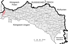 Location of Biała County within Kingdom of Galicia and Lodomeria.