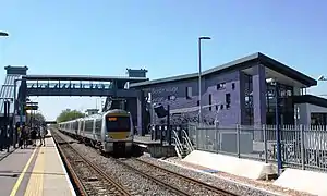 Bicester Village (2015–present, previously Bicester Town 1987–2014, Bicester London Road 1954–1968, Bicester 1850–1954) is one of two railway stations serving the town of Bicester in Oxfordshire (the other is Bicester North). It is 12 miles (19 km) northeast of Oxford on the Oxford-Bedford line[lower-alpha 1] near its junction with the Chiltern Main Line. The renamed Bicester Village station reopened on 25 October 2015 with trains initially running between Oxford Parkway and London Marylebone. All trains serving it are operated by Chiltern Railways.