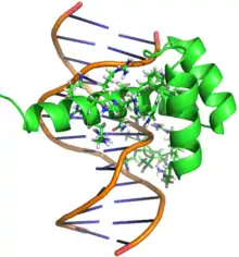 PyMOL rendering of Bicoid homeodomain bound to its consensus site