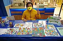 Nathaniel Rhodes ("B" artist) displays art during a 2021 Black History Month public program at The Children's Museum of Indianapolis.