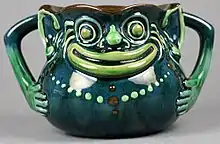 Vulliamy went on to work for several art pottery factories and was especially fond of portraying bats, goblins, and other reclusive and grotesque creatures, in a wide variety of materials, making wax and clay models to develop her pottery designs.[9][10] Her goblins were usually shown laughing or grinning,[8] and she herself referred to them as "bogies".[11]
