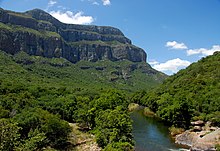 The Blyde River Canyon is a 26km long[1] Canyon located in Mpumalanga, South Africa. It is one of the larger canyons on Earth but much smaller than those of Asia, the Grand Canyon and the Fish River Canyon.[1][2] Unlike the Grand and Fish River Canyon, the Blyde River Canyon is a "green canyon" which is dominated by subtropical vegetation. The canyon forms part of the Blyde River Canyon Nature Reserve.
