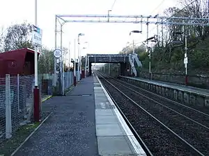 In 2016, there is a daily half-hourly service eastbound to Glasgow Central and westbound to Gourock.[1] The service drops to hourly each way in the evenings and on Sundays.