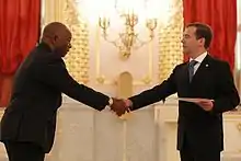 Chidyausiku presents his letters of credence to Russian President Dmitry Medvedev on 14 July 2011.
