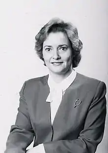 Newman was the assistant dean of students at UNH from 1969 to 1972 and dean of students from 1972 to 1978.[4] In 1981 she moved to Washington DC to serve as chief of staff to Judd Gregg when he was in the United States House of Representatives.[1][5] From 1982 to 1984 she was the associate director of presidential personnel at the White House.[6] She then served as Assistant Secretary of Commerce for economic development and head of the Economic Development Administration from 1984 to 1985.[5] She served as president of the Business and Industry Association of New Hampshire in Concord from 1985 to 1988. On February 11, 1988 she was named president of the New England Council.[6] She left in 1989 to lead administrative operations for the George H. W. Bush administration.[7] From 1991 to 1995 she was president of Coastal Broadcasting Corp., owner of WZEA-FM radio in Hampton, New Hampshire.[8]