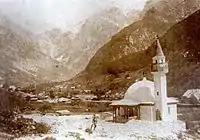 During the First World War, a Bosniak regiment made up primarily of Bosnian Muslims was sent to fight on the Italian front.[2] One of the soldiers who fought there was a boy called Elez Dervišević, the youngest soldier to fight in the Soca battle in World War I.[2] Elez was 11 years old when he served in the Austro-Hungarian Army. In Log pod Mangartom there is a statue of Elez's father dedicated to him.[2]