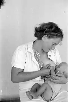 Breastfeeding and mental health is the relationship between postpartum breastfeeding and the mother's and child's mental health. Research indicates breastfeeding may have positive effects on the mother's and child's mental health, though there have been conflicting studies that question the correlation and causation of breastfeeding and maternal mental health.[1][2] Possible benefits include improved mood and stress levels in the mother, lower risk of postpartum depression, enhanced social emotional development in the child, stronger mother-child bonding and more. Given the benefits of breastfeeding, the World Health Organization (WHO), the European Commission for Public Health (ECPH) and the American Academy of Pediatrics (AAP) suggest exclusive breastfeeding for the first six months of life.[1] Despite these suggestions, estimates indicate 70% of mothers breastfeed their child after birth and 13.5% of infants in the United States are exclusively breastfed.[3] Breastfeeding promotion and support for mothers who are experiencing difficulties or early cessation in breastfeeding is considered a health priority.[1]
