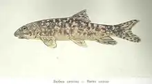 1. 1 2 Crivelli, A.J.; Bianco, P.G. (2006). "Barbus caninus". IUCN Red List of Threatened Species. 2006: e.T2592A9459989. doi:10.2305/IUCN.UK.2006.RLTS.T2592A9459989.en. Retrieved 17 November 2021.