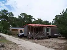 The centre is 175 hectares (430 acres) of land adjoining the beach to the south of Montalivet-les-Bains, in the commune of Vendays-Montalivet, in the Medoc, part of Aquitaine north of Bordeaux in France. It comprises a mixture of about 1000 privately owned bungalows and caravans, and 960 sites suitable for touring caravans and 260 for camping. There are over 12 kilometres (7.5 mi) of internal roads laid out in an approximate grid formation. The pitch and bungalows are arranged into 20 villages, each having its own character and characteristics. Families tend to return regularly, usually to the same village.