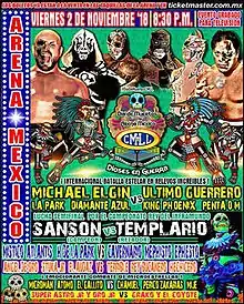 The October 31, 2014 Día de Muertos show was the first of Mexican professional wrestling promotion Consejo Mundial de Lucha Libre's Dia de los Muertos ("Day of the Dead") celebrations in 2014 and began a tradition of CMLL holding a major show to celebrate the Latin American holiday. As part of their Dia de los Muerte celebrations CMLL admitted all kids in costumes for free for the show.[4] CMLL held a second Dia de los Muerte celebration on Sunday November 2 as well. Both shows included the Edcanes, CMLL's ring girls and various wrestlers dressed up in traditional Día de Muertos garb. In 2014, CMLL also turned the basement of Arena México into a haunted house attraction before each show.[5] CMLL has held one or more shows to celebrate the holiday annually since 2014, with 2018 marking the fifth year in a row.[2]