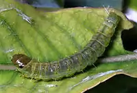 The larvae feed on a wide variety of deciduous trees, shrubs and herbaceous plants. It can become a pest on olive trees and avocados.