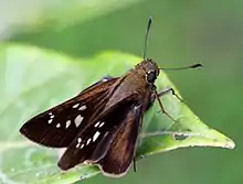 One or more of the preceding sentences incorporates text from this source, which is in the public domain: E. Y., Watson (1891). Hesperiidae Indicae : being a reprint of descriptions of the Hesperiidae of India, Burma, and Ceylon. Madras: Vest and Company. pp. 42–43. - ↑ Ravikanthachari Nitin; V.C. Balakrishnan; Paresh V. Churi; S. Kalesh; Satya Prakash; Krushnamegh Kunte (2018-04-10). "Larval host plants of the buterfies of the Western Ghats, India". Journal of Threatened Taxa. 10 (4): 11495–11550. doi:10.11609/jott.3104.10.4.11495-11550 – via JoTT.