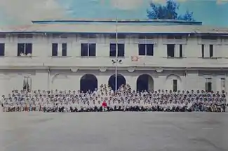 The Philippine Commission enacted Act No. 74 creating the Department of Public Instruction on January 21, 1901,[3] and later that year, American educators known as Thomasites arrived in Ambos Camarines (the province's name before it was split into two, Camarines Sur and Camarines Norte) to teach the Bicolanos.[4] On July 15, 1902, the school was launched as the Provincial High School of Nueva Caceres (former name of Naga City when it was still a town). Headed by its first principal Mr. Frank Crone and assisted by Ms. Minerva Udell, the institution started with 70 students and 4 American mentors. The attendance increased steadily and by the end of the first term there were 200 students. Then it was transferred somewhere on Mabini Street (now San Francisco) until it was transferred in 1915 to Via Gainza (now Peñafrancia Avenue), its present location. It was by then known as Camarines High School.[5]