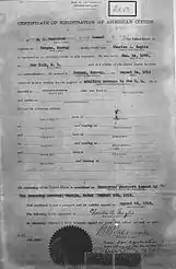 Lody's American documents, in the name of Charles A. Inglis: the real Inglis's passport (left), acquired for Lody by the German Foreign Office, and a supporting certificate of registration (right), procured by Lody in Bergen, Norway