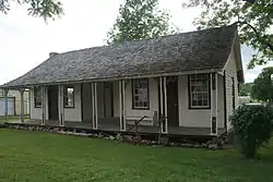 The Casey House is a historic house on the Baxter County Fairgrounds in Mountain Home, Arkansas. Still at its original location when built c. 1858, is a well-preserved local example of a dog trot house, a typical Arkansas pioneer house. It is a rectangular structure made out of two log pens with a breezeway in between. It is finished in clapboard siding on the outside walls, and the breezeway is finished with flushboarding. A porch extends the width of the house front, and is sheltered by the side-gable roof that also covers the house. Colonel Casey, its builder, was one of Mountain Home's first settlers, and its first representative in the Arkansas legislature.[2]