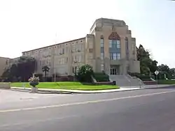In 1932, the school relocated to the current three-story art deco brick building on 2.2 acres (0.89 ha) at 1403 N. St. Mary's Street[9] and was renamed once more to Central Catholic School.[1][10] Classrooms were added to the unfinished third floor in the late 1940s.[11] By 1950 attendance grew to 740, including its first black student in 1951.[9] The third floor was not occupied until 1953. Grade school classes were dropped in 1955.[9] A Dr Pepper bottling plant occupied the northeast corner of the site until 1956. By the end of the 1950s the school added its first lay teacher to its staff, to be evenly split between Marianist brothers and lay people within ten years.[9]