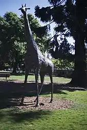 Albert Guibara sculpted a life-size giraffe statue by brazing copper plates together, named Leon, in honor of his father's 80th birthday.[17] It was installed in 1978 and can be seen on the park's northeast lawn, by the corner of 5th and Laurel (37°33′46″N 122°19′20″W / 37.5628°N 122.3222°W / 37.5628; -122.3222 (Leon)).