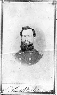 Charles W. Adams (1834–1909) was an officer in the Union Army during the American Civil War. He entered the Union Army in 1862 as a Colonel and was given command of the 12th Kansas Volunteer Infantry.[1] He led his unit at the Battle of Jenkins' Ferry where he received a gunshot wound in his arm. He mustered out of Union service in 1865 as a Brevet Brigadier General and returned to Lawrence, Kansas.[1]