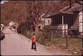 1974 DOCUMERICA photo, captioned "Youngster returning to school after going home during recess to get an ice cream cone. The town of Chattaroy, West Virginia, near Williamson, is small enough so the youngsters can do this. Many of them also go home for lunch."