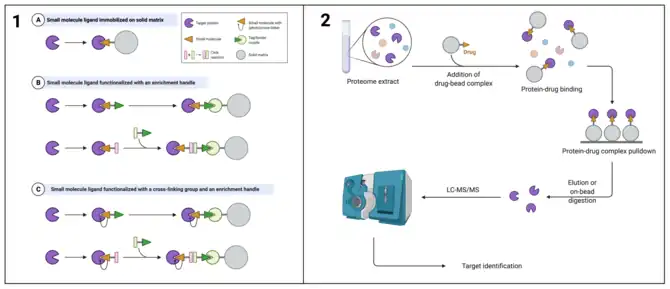 - 1 2 3 Chen X, Wang Y, Ma N, Tian J, Shao Y, Zhu B, et al. (May 2020). "Target identification of natural medicine with chemical proteomics approach: probe synthesis, target fishing and protein identification". Signal Transduction and Targeted Therapy. 5 (1): 72. doi:10.1038/s41392-020-0186-y. PMC 7239890. PMID 32435053.