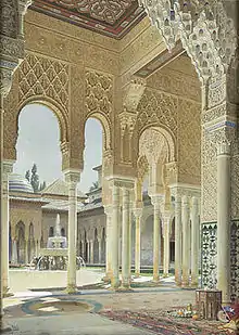 The interiors of the Alhambra in Granada, Spain decorated with arabesque designs.