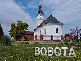 First Eastern Orthodox Christians in Bobota are mentioned in document from 1366 during the Kingdom of Hungary rule in the region.[4] 30 Serb households are mentioned in 1558 during the Ottoman Hungary period.[4] One older Serbian Orthodox church, mentioned in 1733, existed at the site of the present day church.[4] The decision to build a new one was made in 1762 when the Village Knez (petty nobility title) Jovan Nedeljković.[4] Until 1866 the village was organized into two Serbian Orthodox parishes with two priests with families living in Bobota.[4] Up until the beginning of the World War I the church tower had a 600 kilogram four rings built in Pest which were then confiscated by the Austro-Hungarian Army.[4] After the establishment of the Kingdom of Serbs, Croats and Slovenes new four rings of 1400 kilograms were made in Ljubljana.[4] During the World War II in Yugoslavia and the Genocide of Serbs in the Independent State of Croatia the church was converted into a Roman Catholic church.[4] At the final stage of the war in 1945, Yugoslav Partisans burned down the parish building which was next to the church. The new parish building was built in 1952 during the early years of the existence of the Socialist Republic of Croatia.