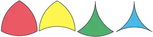 • Trefoil, a circular triangle bulging outward from its three vertices, used in architecture
