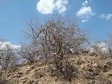 Commiphora wightii, with common names Indian bdellium-tree,[3] gugal,[4] guggal, guggul,[3] gugul,[3] or mukul myrrh tree, is a flowering plant in the family Burseraceae, which produces a fragrant resin called gugal, guggul or gugul, that is used in incense and vedic medicine (or ayurveda). The species is native to southern Pakistan and western India. It prefers arid and semi-arid climates and is tolerant of poor soil.[1]
